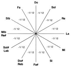 It is known what the musical situation was in the seventeenth century (natural scale): it was impossible to build a keyboard instrument capable of performing music that modulated at will in all the twenty-four major and minor tones existing, bearing in mind compliance with the acoustic laws. Things were at this point when the German man Andreas Werkmeister, a man from the countryside and organist from Halberstadt, resolved the tricked question with a very happy flash of common sense. He simply reversed the problem: instead of stubbornly trying to invent a hypothetical instrument, he courageously solved the fact by retouching and adjusting all the intervals of the scale by tempering them, that is, equating them with each other by dividing the octave into twelve exactly equal parts.