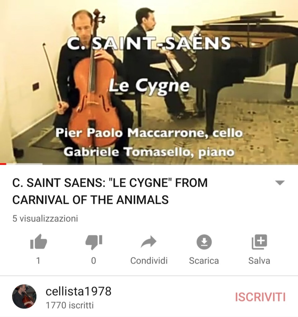 🇬🇧At 98 years from its first performance (26 Feb 1922) I want to share dear friends the video of the song “Le Cigne” from “Le Carnaval des Animaux”.